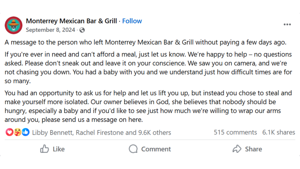 You have probably heard about them, about their authentic Mexican food, you may have even seen some posts that have gone viral. In a world where the future is so uncertain and people are not always looking for the betterment of others, kindness can go a long way. That is why our neighborhood needs businesses like Monterrey Mexican Bar & Grill. The owner, Megan Ramirez, has proved that kindness absolutely matters, and her success in the restaurant world has paired beautifully with the heart she has for other people.